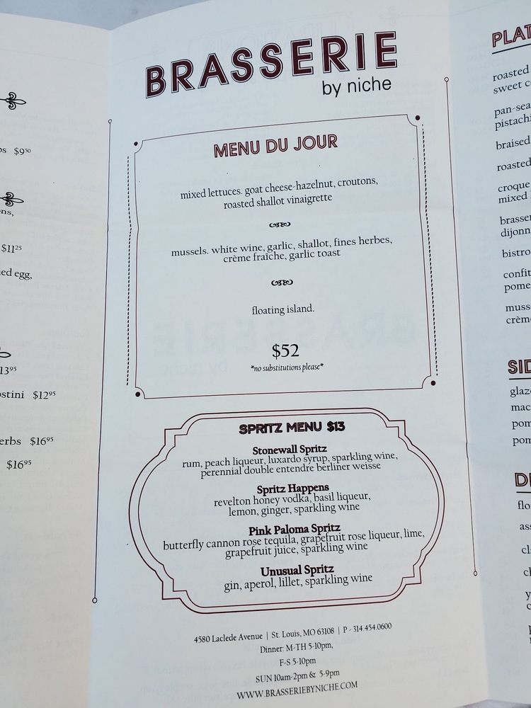 Located in St. Louis' Central West End, Brasserie by Niche offers a charming and inviting experience for French cuisine enthusiasts. With a focus on classic bistro fare, this restaurant delivers dishes like onion soup, housemade country pâté, and cassoulet with duck confit. Whether you're in the mood for brunch favorites like eggs Benedict and French toast or interested in a delectable dinner, Brasserie by Niche caters to all tastes.